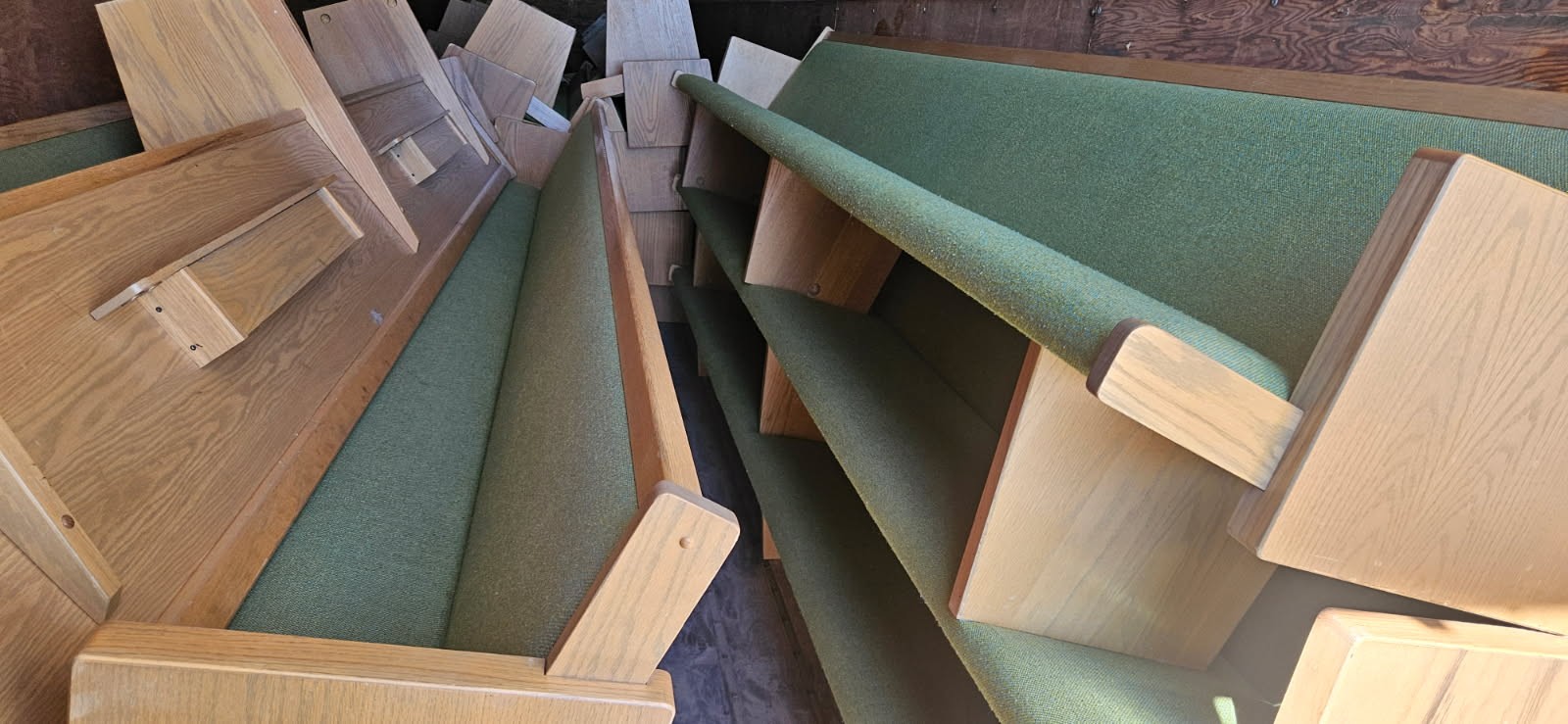 Also, in case any of you are interested, or may know of a ministry that would be interested, I have included a photo of some pews that a church wants to donate. These pews are in good condition. There are a total of 24 of them. 22 are 16 ft. long and 2 are 4 ft. They are located in Ogallala, Nebraska but would be worth a trip if a church is in need of some nice pews. If any of you are interested, please contact me and I will put you in touch with my friend in Ne.